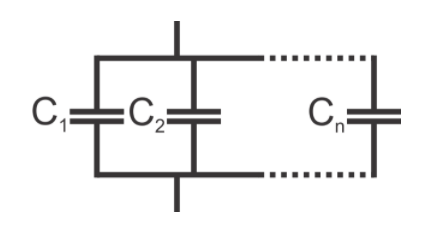 以下等式用于確定多個(gè)電容器并聯(lián)的等效電容: